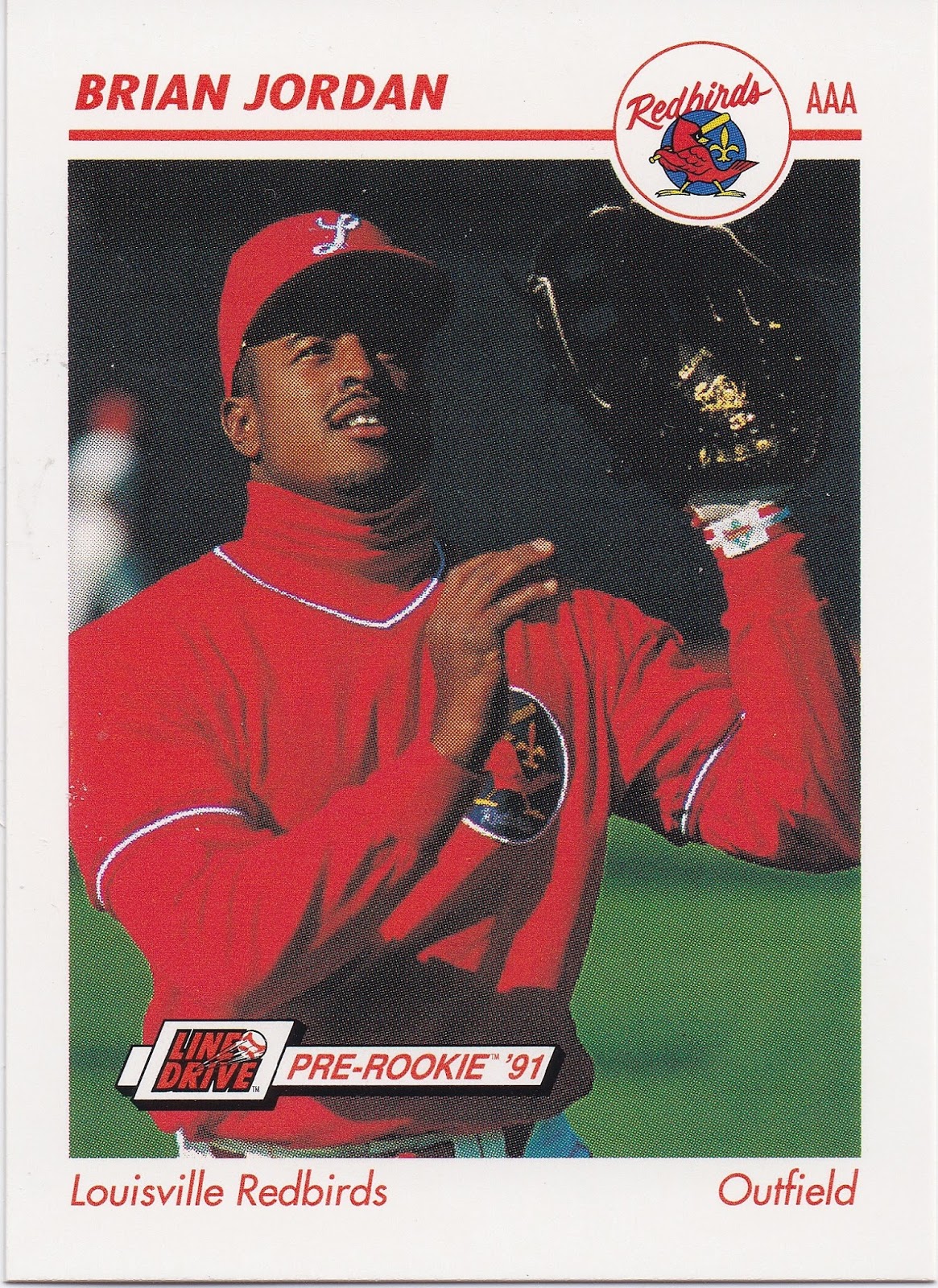 One of the sets that got a little love in the podcast was the 1991 Line Drive Minor League set which is one of my favorite Minor League sets.  I have actually picked these cards in more recent years just for fun since the boxes are out there for next to nothing.  As a 1990s baseball fan there are so many great names in these sets.  One of my favorites in the Line Drive set is former Cardinals outfielder, also a former NFL defensive back with the Atlanta Falcons, Brian Jordan.